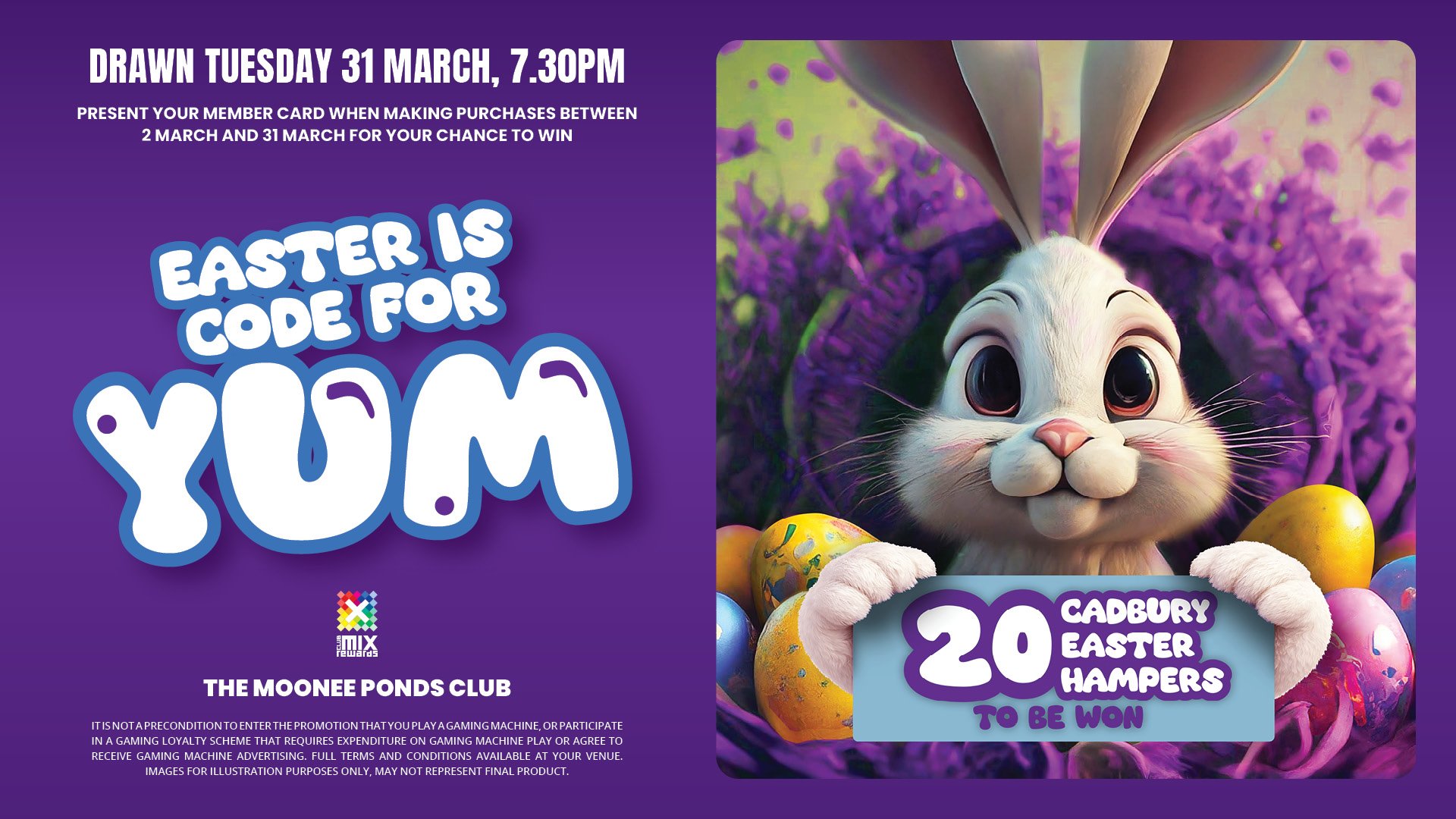 We’re giving away 20 Cadbury Chocolate Easter Hampers on Tuesday the 31st of March at 7:30pm!
